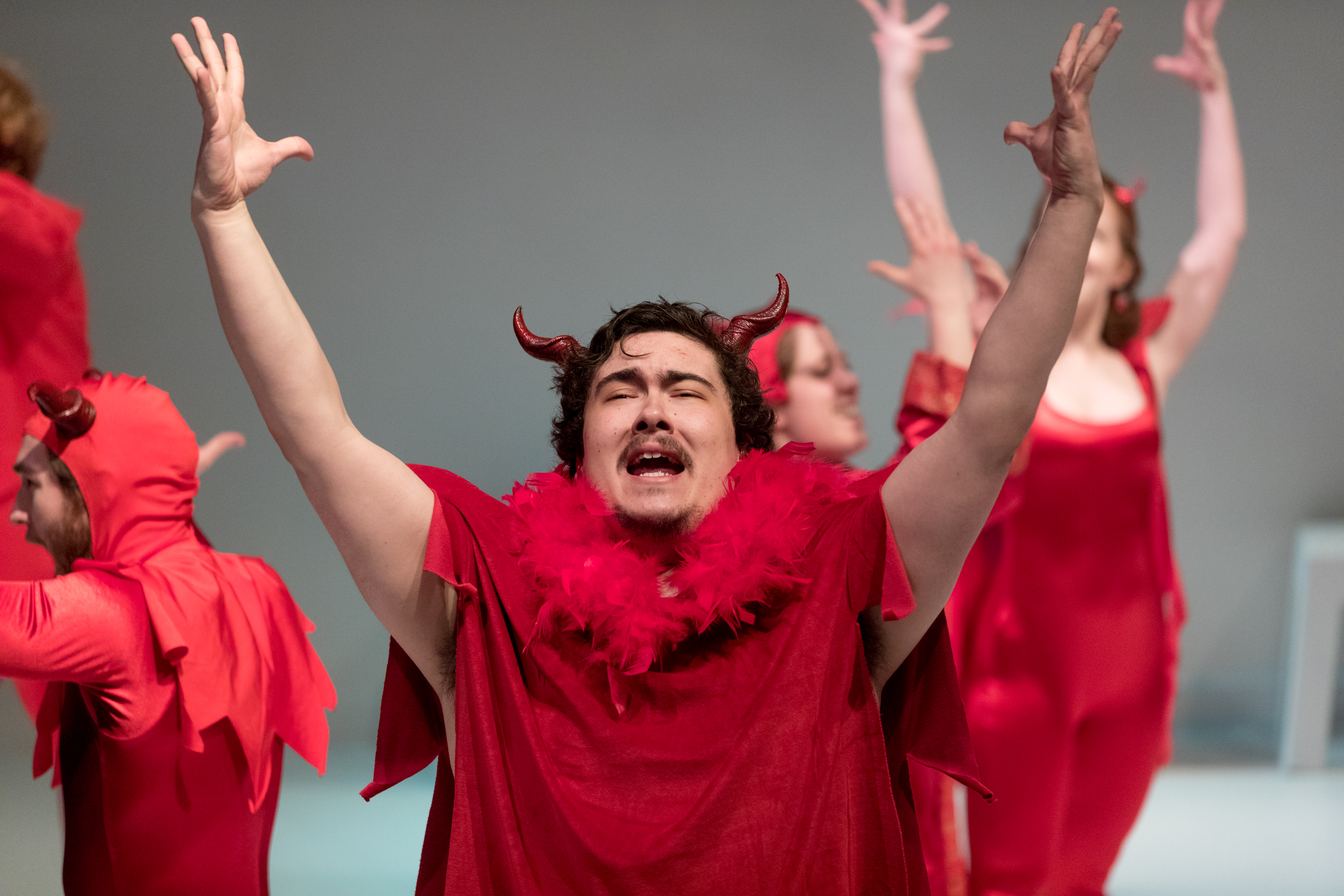The Rise and Fall of Adam and Eve is an original performance created through a devising process that responded to the medieval mystery play “The Creation” as a starting point. Inherent in the process, devised theatre often poses the question: what is theatre? – a necessary query that continues to challenge, renew, and energize the form. This approach also invites all those involved (directors, performers, designers, technicians) to take an artistic leap into the unknown as the work emerges and evolves over time.